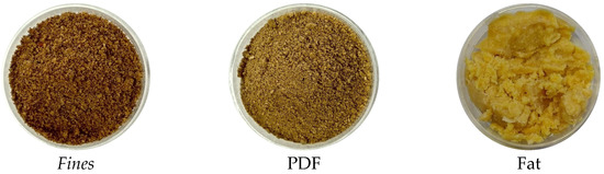 Fines and the fractions recovered after thermal treatment: PDF and fat.