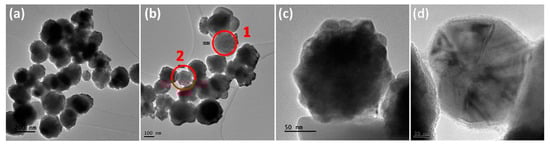 (a–d). Microscopic analysis (TEM) of the recycled Ni3Fe1 BMNPs at different magnification was obtained after the DES-phase hydrogenation reaction.