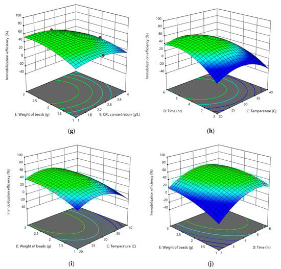 2.4. Optimization of CRL Immobilization Using RSM for Immobilization Efficiency