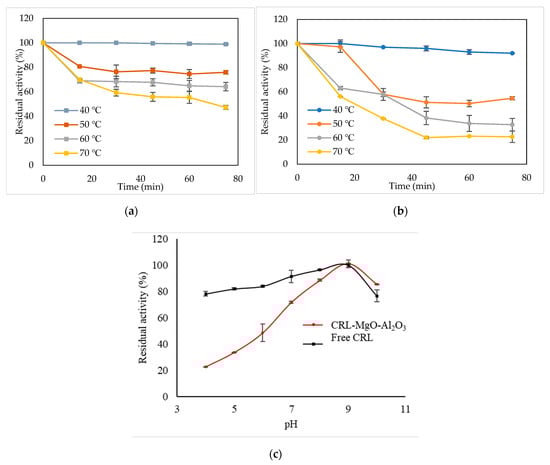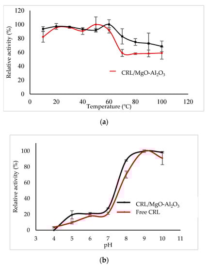 2.6. Biochemical Characterization of CRL/MgO-Al2O3 and free CRL