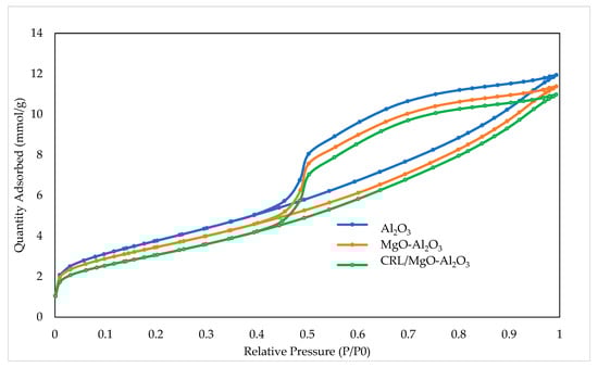 3.6. Physical Characterization of Support (MgO-Al2O3) and CRL/MgO-Al2O3