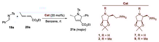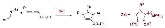 3.3. Enantioselective Phosphine-Catalyzed [3 + 2] Cycloaddition between Allenoates and Electron-Deficient Imines