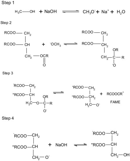 3.1. Mechanism of Interesterification, Hydrolysis and Alkali-Catalyzed Transesterification