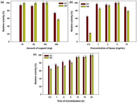 | Amount of immobilized enzyme (mg/mg) | - | 0.241 ± 0.0072 | 0.243 ± 0.0073 |