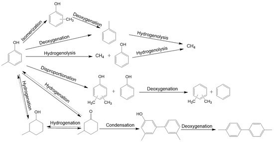 - Chen, C.; Chen, G.; Yang, F.; Wang, H.; Han, J.; Ge, Q.; Zhu, X. Vapor phase hydrodeoxygenation and hydrogenation of m-cresol on silica supported Ni, Pd and Pt catalysts. Chem. Eng. Sci. 2015, 135, 145–154. [Google Scholar] [CrossRef]
