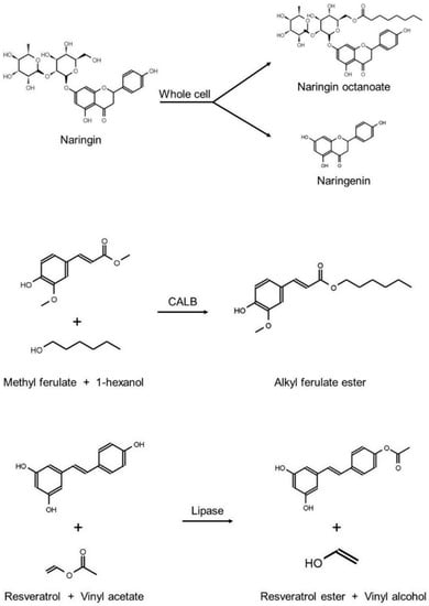 The following section discusses cases of enzymatic modification and the synthesis of antioxidants for their biochemical improvement and benefit using biocatalytic processes to generate new molecules with nutraceutical prospects.