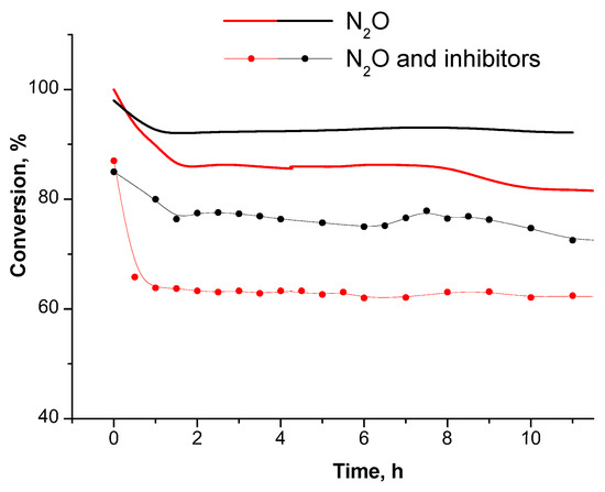 2.3.3. The Decomposition of N2O in the Presence of Inhibitors