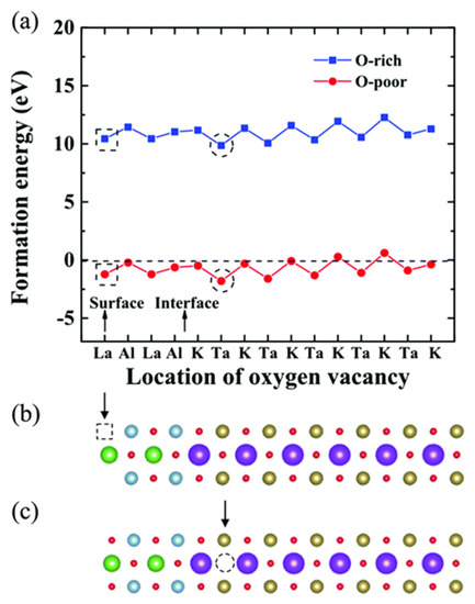 - Wang, Y.; Zhang, Z.; Cheng, J.; Zhang, Q.; Tang, W.; Yang, K. Creating a two-dimensional hole gas in a polar/polar LaAlO3/KTaO3 perovskite heterostructure. J. Mater. Chem. C 2020, 8, 14230–14237. [Google Scholar] [CrossRef]