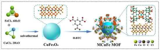 Schematic diagram of the synthesis process of MCuFe MOF. Reprinted with permission from Ref. [111]. Copyright 2020, Elsevier.