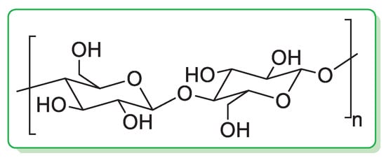 Cellulose is the most abundant natural biopolymer in the world []. In cellulose, the glucose units are linked through β(1→4) glycosidic linkages (Figure 1) and the length of the chain varies from a few hundred sugar units in wood pulp to over 10,000 in cotton.
