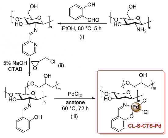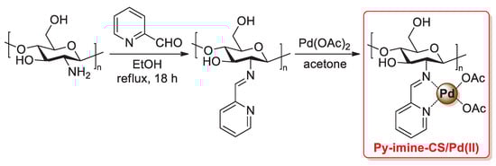 - Chundawat, N.S.; Pathan, S.; Singh, G.P.; Deuri, A.S.; Zarrintaj, P.; Chauhan, N.P.S. Synthesis and characterization of chitosan pyridyl imine palladium (CPIP) complex as green catalyst for organic transformations. Chem. Pap. 2021, 75, 2835–2850. [Google Scholar] [CrossRef]