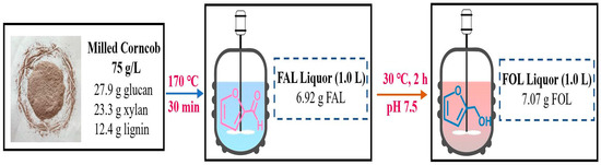 - Li, Y.Y.; Li, Q.; Zhang, P.Q.; Ma, C.L.; Xu, J.H.; He, Y.C. Catalytic conversion of corncob to furfuryl alcohol in tandem reaction with tin-loaded sulfonated zeolite and NADPH-dependent reductase biocatalyst. Bioresour. Technol. 2021, 320, 124267. [Google Scholar] [CrossRef]