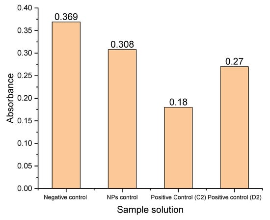 The treatment with photocatalyst caused a decrease in bacterial growth. The absorbance of this bacterial culture was measured as 0.308, which is lower than that of the negative control (0.3690) (Figure 10).