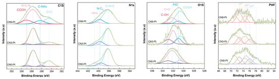 The XPS spectra of C 1s, N 1s, O 1s, and Pt 4f of CNx-Pt photocatalysts.