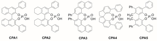- Rahman, A.; Lin, X. Development and application of chiral spirocyclic phosphoric acids in asymmetric catalysis. Org. Biomol. Chem. 2018, 16, 4753–4777. [Google Scholar] [CrossRef]