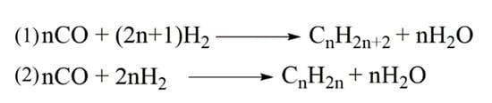 The Fischer–Tropsch process (FTP) is a well-established chemical route to convert a mixture of carbon monoxide and hydrogen into liquid hydrocarbons, as reported in Figure 2.
