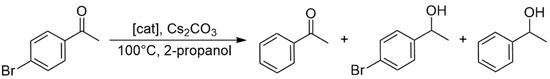 Transfer hydrogenation of 4-bromoacetophenone in 2-propanol catalyzed by 40 and 41.