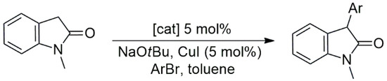 α-Arylation of oxindole with bromoarenes catalyzed by 65 and 66.