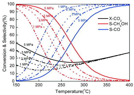 Equilibrium conversion–selectivity values of the CO2 hydrogenation reaction at various pressures. Reproduced with permission from ref. [7]. Copyright 2020, the Royal Society of Chemistry.