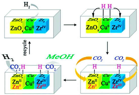 - Wang, J.; Li, G.; Li, Z.; Tang, C.; Feng, Z.; An, H.; Liu, H.; Liu, T.; Li, C. A highly selective and stable ZnO-ZrO2 solid solution catalyst for CO2 hydrogenation to methanol. Sci. Adv. 2017, 3, e1701290. [Google Scholar] [CrossRef] [PubMed]