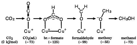 - Wachs, I.E.; Madix, R.J. Selective oxidation of CH3OH to H2CO on a copper(110) catalyst. J. Catal. 1978, 53, 208–227. [Google Scholar] [CrossRef]