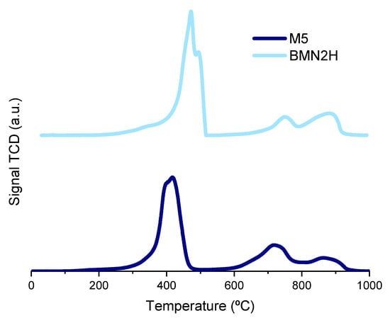 Figure 8. H2–TPR profiles for M5 and BMN2H samples.