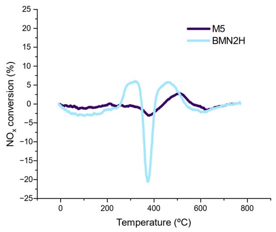 Figure 11. NOX conversion profiles for M5 and BMN2H samples.
