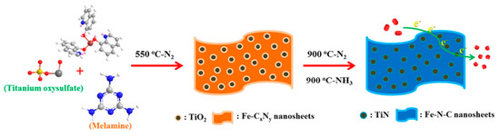 The preparation process of TiN/Fe-N-CNS catalyst [78].