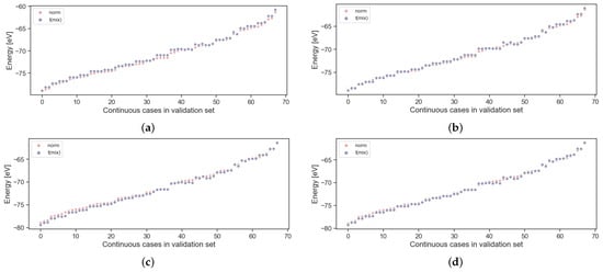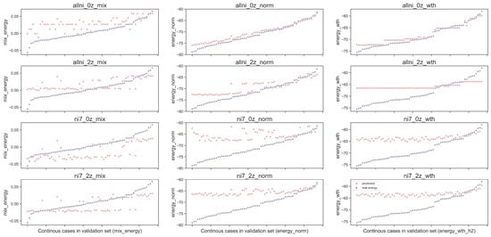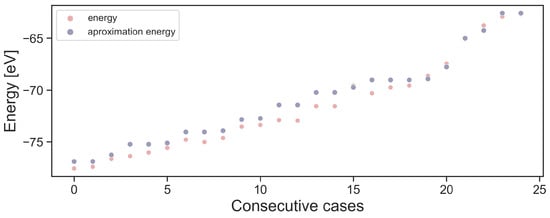 The resulting parameter is called mixing energy and is denoted in the dataset as mix_energy. - The energy of the hydrogen molecule was determined under the same conditions under which the energy of all clusters was determined (Section 3.2). Then, half of this value was subtracted from the systems that contained a hydrogen atom in their composition. The energy thus determined is named in the dataset as energy_wth_h2 and in the rest of the paper is abbreviated as wth or energy_wth. Note that it does not matter whether the energy_norm or energy_wth is used in Equation (2), as mathematically, they lead to the same result.