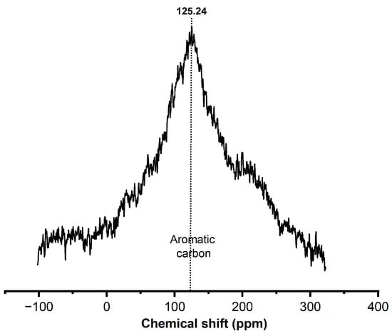 Figure 5 shows the nuclear magnetic resonance spectroscopy (NMR13C) spectra in the solid state, which helped us to learn the status of the deposited coke in the spent catalyst and to complete the above spectroscopy results. Only one strong resonance peak was observed at 125.24 ppm, which can be attributed to aromatic (100–150 ppm) carbons, indicating polyaromatic hydrocarbons in particular, regardless of the reaction-regeneration operating conditions [].