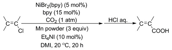 Ni-catalyzed carboxylation reaction of vinyl chloride. Reprinted (adapted) with permission from [48].