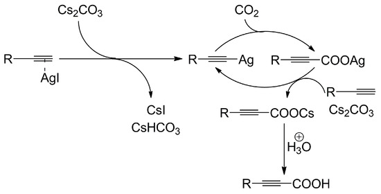 Salt-free copper-catalyzed carboxylation of terminal alkynes with CO2. Reprinted (adapted) with permission from [80].