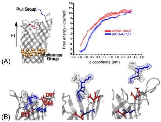 - Baaden, M.; Sansom, M.S.P. OmpT: Molecular Dynamics Simulations of an Outer Membrane Enzyme. Biophys. J. 2004, 87, 2942–2953. [Google Scholar] [CrossRef] [PubMed]