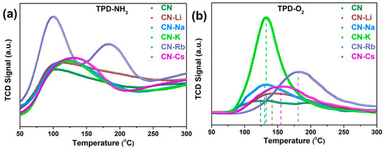(a) TPD-NH3 and (b) TPD-O2 on the obtained PCN.