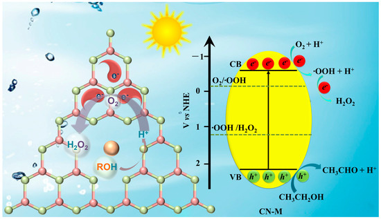 Hydrogen peroxide (H2O2) is an essential inorganic chemical that has been extensively employed in organic syntheses, environmental remediations, paper pulp bleaching, and medical disinfection [1,2,3,4]. Being an environmentally friendly technique, photocatalytic H2O2 generation has recently attracted wider scientific attention as a topic [5,6,7,8,9]. In particular, polymeric carbon nitride (PCN) has received greater scientific attention for its potential to produce H2O2 by photocatalysis. This is likely because PCN has a high selectivity for this reaction and can easily change its morphology, molecular structure, and band gap [2,10,11].