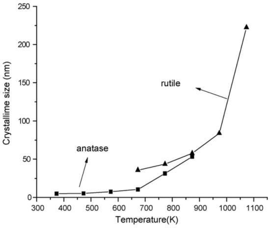 - Farhadian Azizi, K.; Bagheri-Mohagheghi, M.M. Transition from anatase to rutile phase in titanium dioxide (TiO2) nanoparticles synthesized by complexing sol–gel process: Effect of kind of complexing agent and calcinating temperature. J. Sol-Gel Sci. Technol. 2013, 65, 329–335. [Google Scholar] [CrossRef]