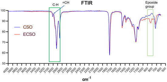 Figure 3. FTIR spectra of CSO (cottonseed oil) and ECSO (epoxidized cottonseed oil).