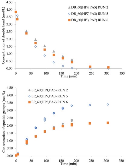 For the estimation of K P P A and K P A , we used the same approach as Wu et al. [35]. In their study, they demonstrated that these coefficients depend on the concentration of double bonds, epoxide groups, and ring-opening products: