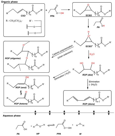 49. de Haro, J.C.; Izarra, I.; Rodríguez, J.F.; Pérez, Á.; Carmona, M. Modelling the epoxidation reaction of grape seed oil by peracetic acid. J. Clean. Prod. 2016, 138, 70–76. [Google Scholar] [CrossRef]