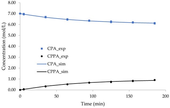 To decrease the estimation number of parameters, the perhydrolysis kinetics of propionic acid were studied and modeled separately following the same procedure as described in previous articles [55,56].