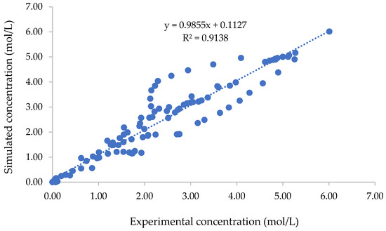 Two-phase system [27,34,35,36]: mass transfer between the aqueous and organic phases is included. In this model, the mass transfer coefficient of different species must be evaluated or calculated;