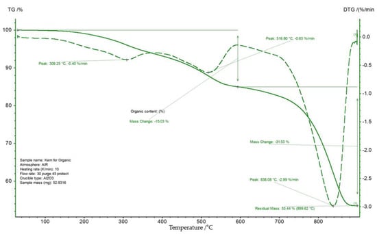 - Mikhailova, A.N.; Kayukova, G.P.; Varfolomeev, M.A.; Emelyanov, D.A. Thermogravimetric parameters of the oxidation of organic matter and asphaltenes from the rocks of the Permian deposits of heavy oil field before and after catalytic hydrothermal treatment. Fuel 2022, 313, 122641. [Google Scholar] [CrossRef]