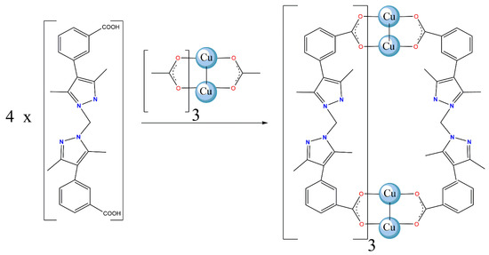 - Li, J.R.; Zhou, H.C. Bridging-Ligand-Substitution Strategy for the Preparation of Metal-Organic Polyhedra. Nat. Chem. 2010, 2, 893–898. [Google Scholar] [CrossRef] [PubMed]