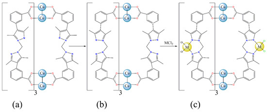 - Evans, J.D.; Sumby, C.J.; Doonan, C.J. Post-Synthetic Metalation of Metal-Organic Frameworks. Chem. Soc. Rev. 2014, 43, 5933–5951. [Google Scholar] [CrossRef]