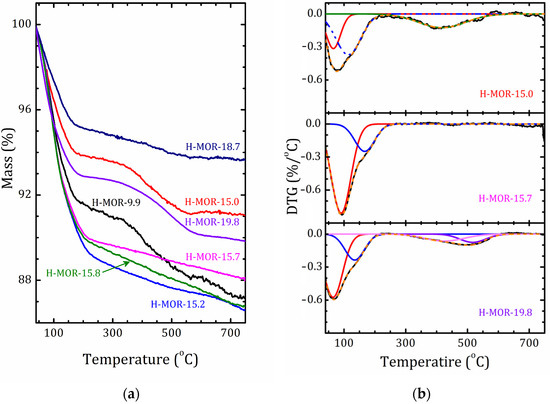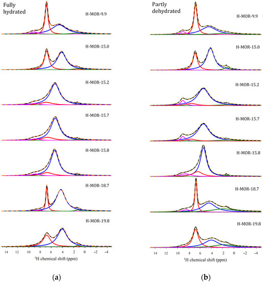 - Krylova, E.; Shelyapina, M.; Nowak, P.; Harańczyk, H.; Chislov, M.; Zvereva, I.; Privalov, A.; Becher, M.; Vogel, M.; Petranovskii, V. Mobility of water molecules in sodium- and copper-exchanged mordenites: Thermal analysis and 1H NMR study. Microporous Mesoporous Mater. 2018, 265, 132–142. [Google Scholar] [CrossRef]