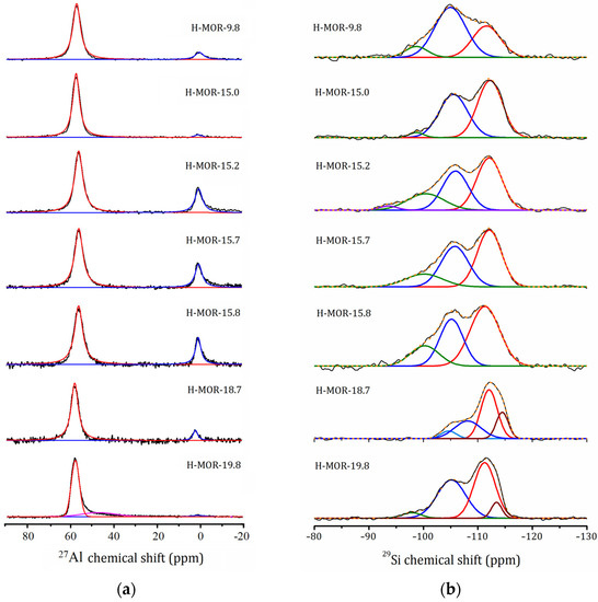 - Krylova, E.A.; Shelyapina, M.G.; Mazur, A.; Baranov, D.A.; Tsyganenko, A.A.; Petranovskii, V.P. Local Structure of Protonated Mordenites with SiO2/Al2O3 ≈ 15 Probed by Multinuclear NMR. J. Struct. Chem. 2022, 63, 930–943. [Google Scholar] [CrossRef]
