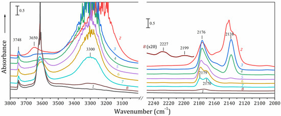 - Hadjiivanov, K.I.; Vayssilov, G.N. Characterization of oxide surfaces and zeolites by carbon monoxide as an IR probe molecule. Adv. Catal. 2002, 47, 307–511. [Google Scholar]