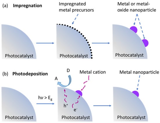 Schematic illustrations of (a) impregnation and (b) photodeposition method.