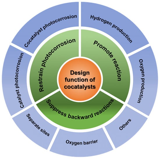 - Comprehensively configure different types of cocatalysts to improve the performance of the catalytic system. For POWS, accelerating the formation of hydrogen and oxygen, inhibiting backward reactions, and reducing photocorrosion are significant factors that need to be considered. It is difficult for a single cocatalyst to achieve all the above functions, so how to rationally configure cocatalysts with different functions is worth further study.