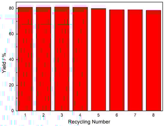 Recycle tests with CoNi@C for the reaction of benzimidazole synthesis.